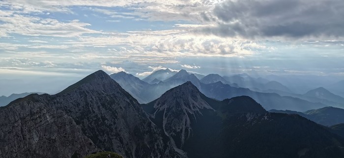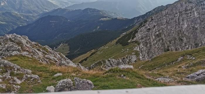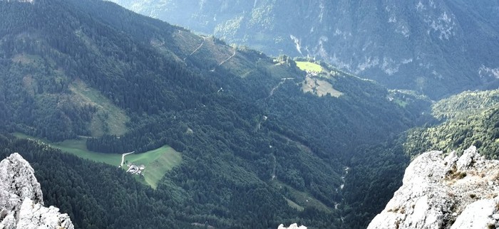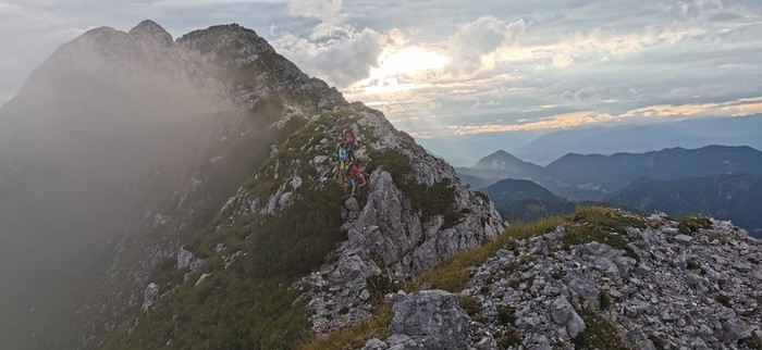 Spuščali smo se po izpostavljenem grebenu Velikega Kladiva do Škrbine 1869 m. Od tukaj nas je čakal le še spust do planine Pungrat 1450 m. Po obveznem obroku žganc in kislega mleka, smo se sprehodili do avtomobila, ki ni bil daleč proč.