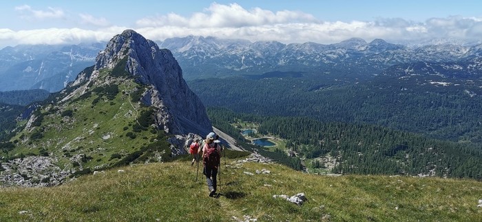 Peš smo nadaljevali na Planino pri jezeru, naprej ćez planino Dedno polje, po poti Za Kopico v smer prevala Vratca, Hribarice in Prehodavci. Na Vratcih smo obrnili levo, in se povzpeli na vrh Male Zelnarice.