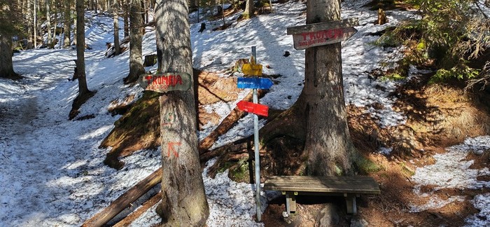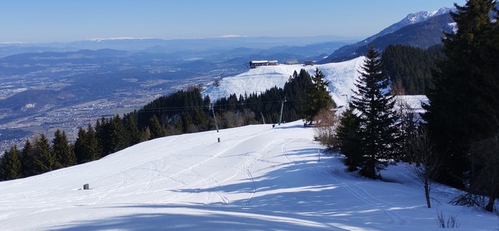 Parkirali smo v Ratečah. Vzpenjali smo se po poti mimo zapuščene karavle na vrh, kjer smo se naužili sneženih pogledov na bližnje smučišče. Spuščali smo se naokoli po cesti, kjer smo uživali nad razgledi proti dolini Planice in okoliške gore.