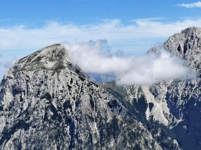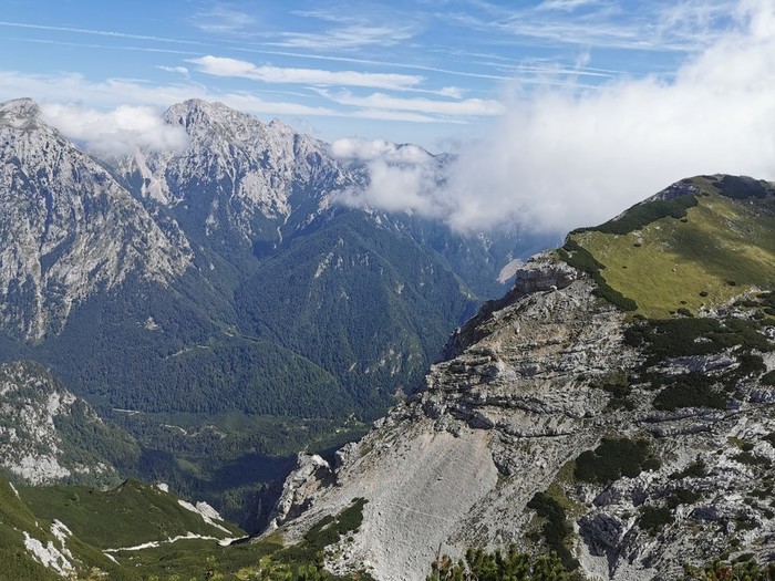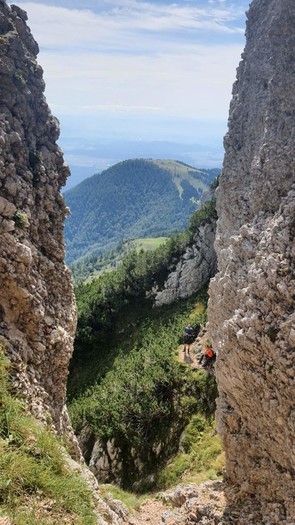Na vrhu smo uživali ob razgledih na KSA. Vračali smo se po grebenu na Vrh Korena in naprej čez Zvoh in smučišče Krvavec. Del poti je bil začinjen z spustom ob jeklenici in krušljivem terenu. Kosilo smo pojedli Pri Viženčarju na Kriški planini, od tam je sledil le še krajši spust do avta.