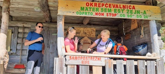 Ob 7.30 smo se zbrali v gostilni Češnar v Cerkljah na obvezni kavici. Skupaj smo se odpeljali v smer Krvavca. Parkirali smo na planini Jezerca. Peš smo nadaljevali najprej do Kriške planine, od tam pa desno v vmer Kompotele. Vmes smo se ustavili pri pastirski koči na planini Koren, kjer smo si privoščili napitek v samopostrežnem šanku.
